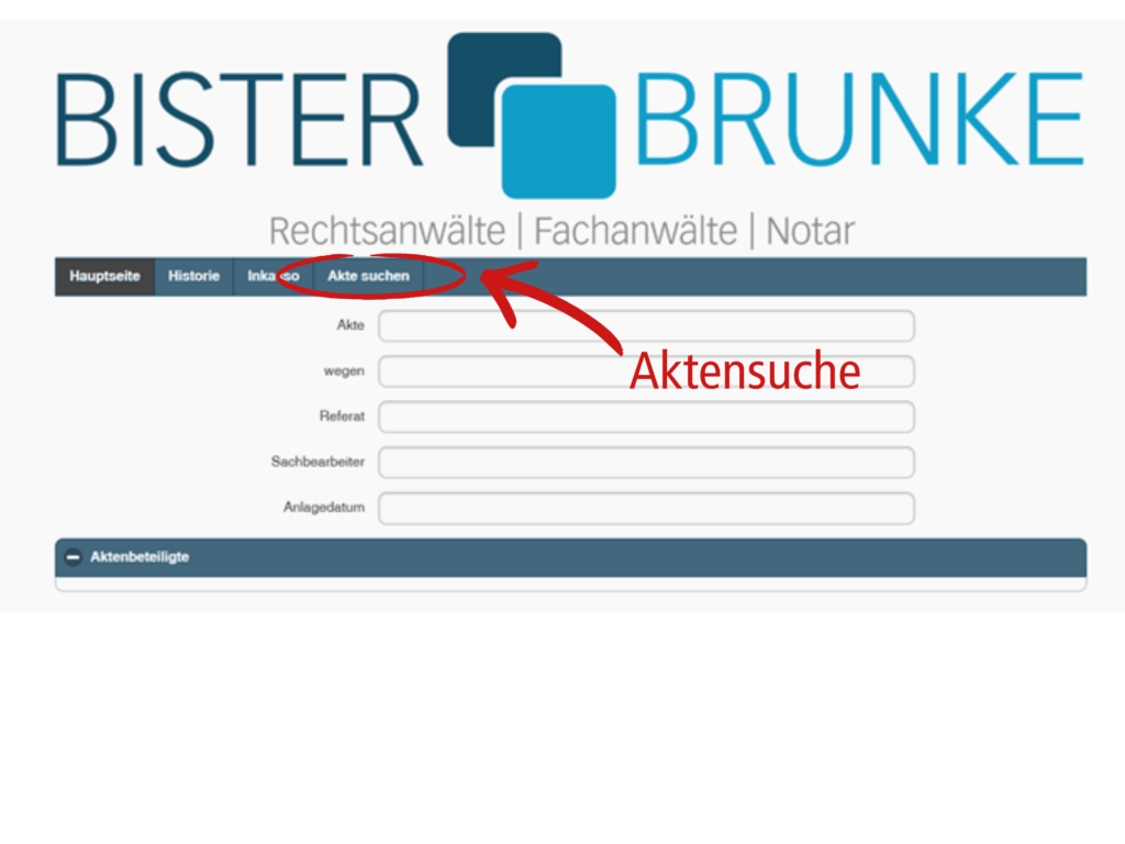 Über den Reiter Aktensuche gelangen Sie im Dashboard zur zentralen Übersicht sämtlicher Mandate. Hier können Sie gezielt nach unterschiedlichen Parametern ihre Akten filtern und suchen. Mit nur einem Klick erhalten Sie die vollständige Detailansicht jeder einzelnen Akte und den aktuellen Status der Bearbeitung..