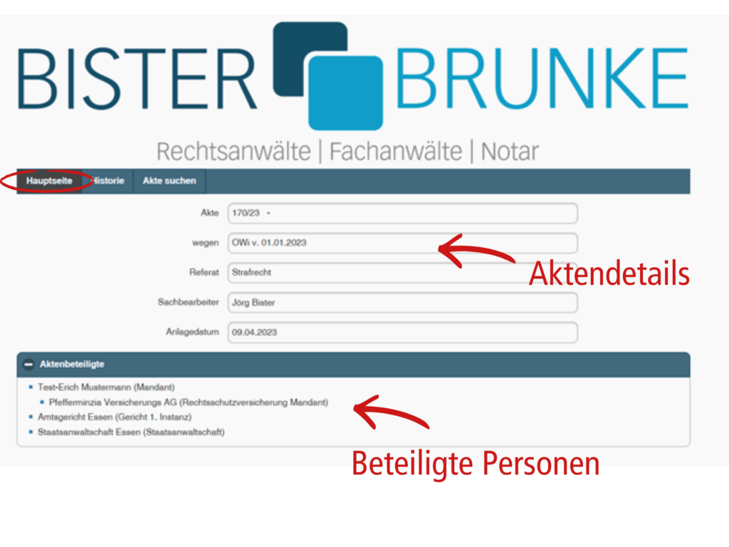 Die Akten-Hauptseite: Alle Fakten auf einen Blick